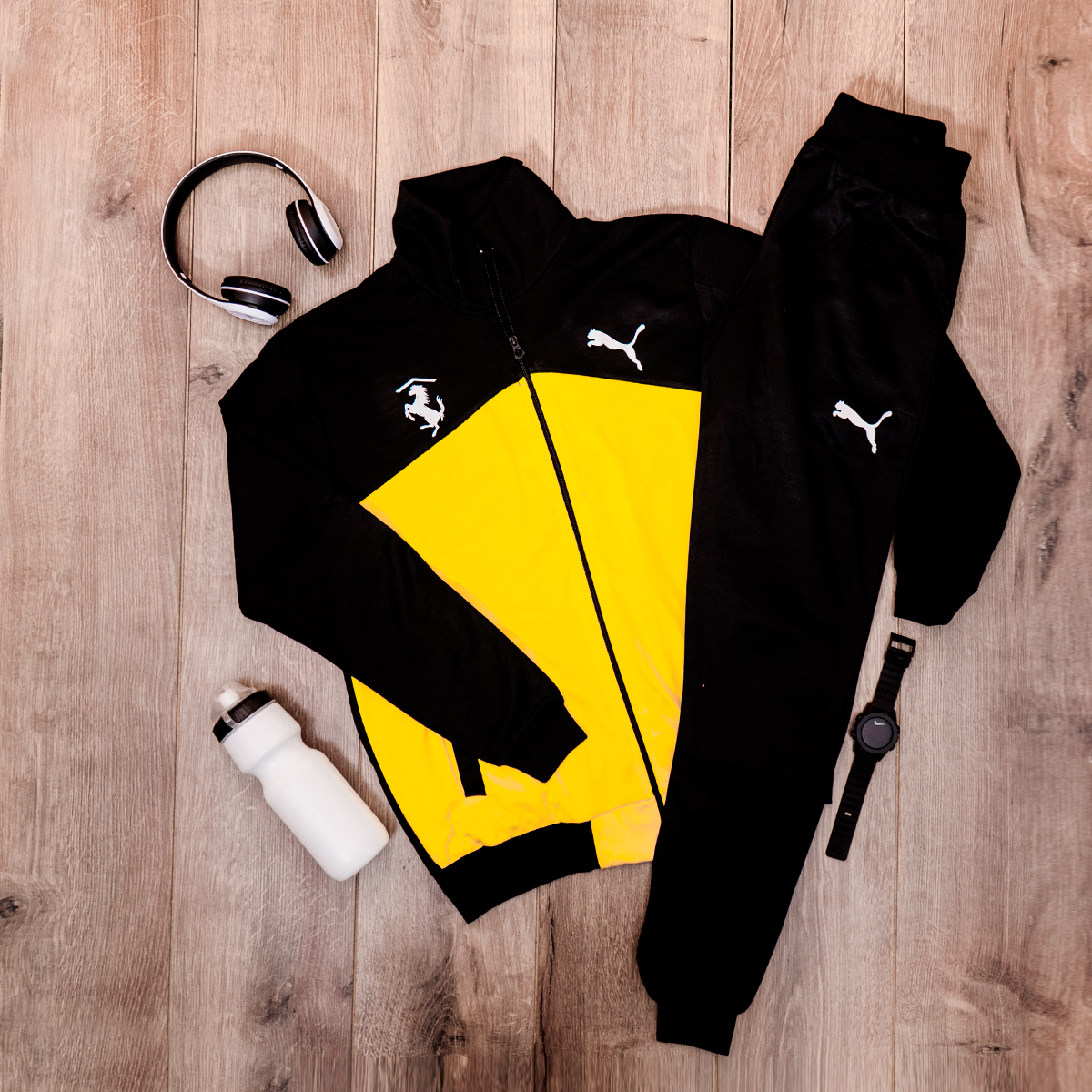 ست سوییشرت شلوار Pumaمردانه مشکی زرد مدلniman