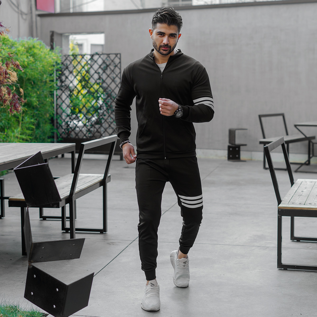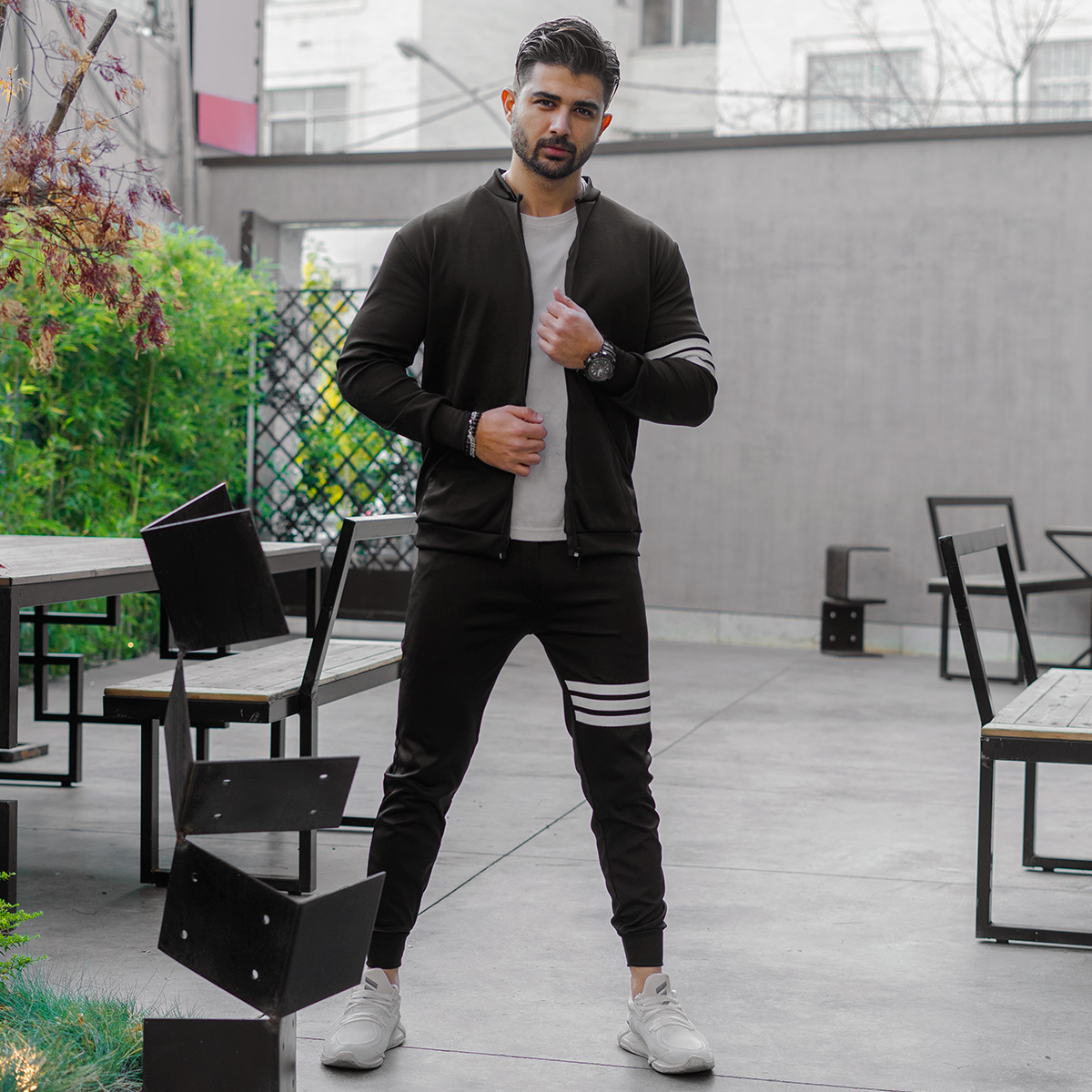 ست سوییشرت شلوار مردانه مشکی خط دار مدلTAKTA