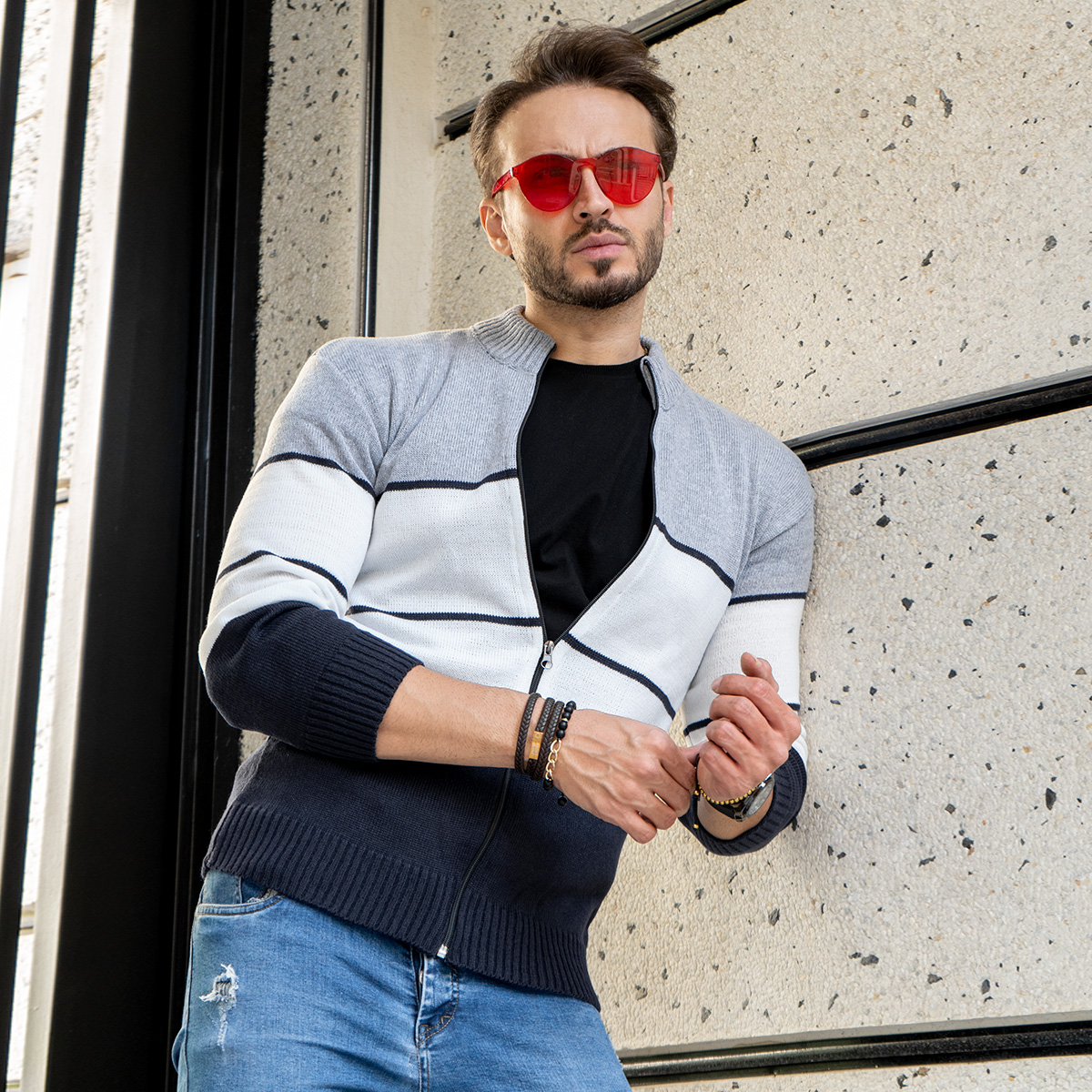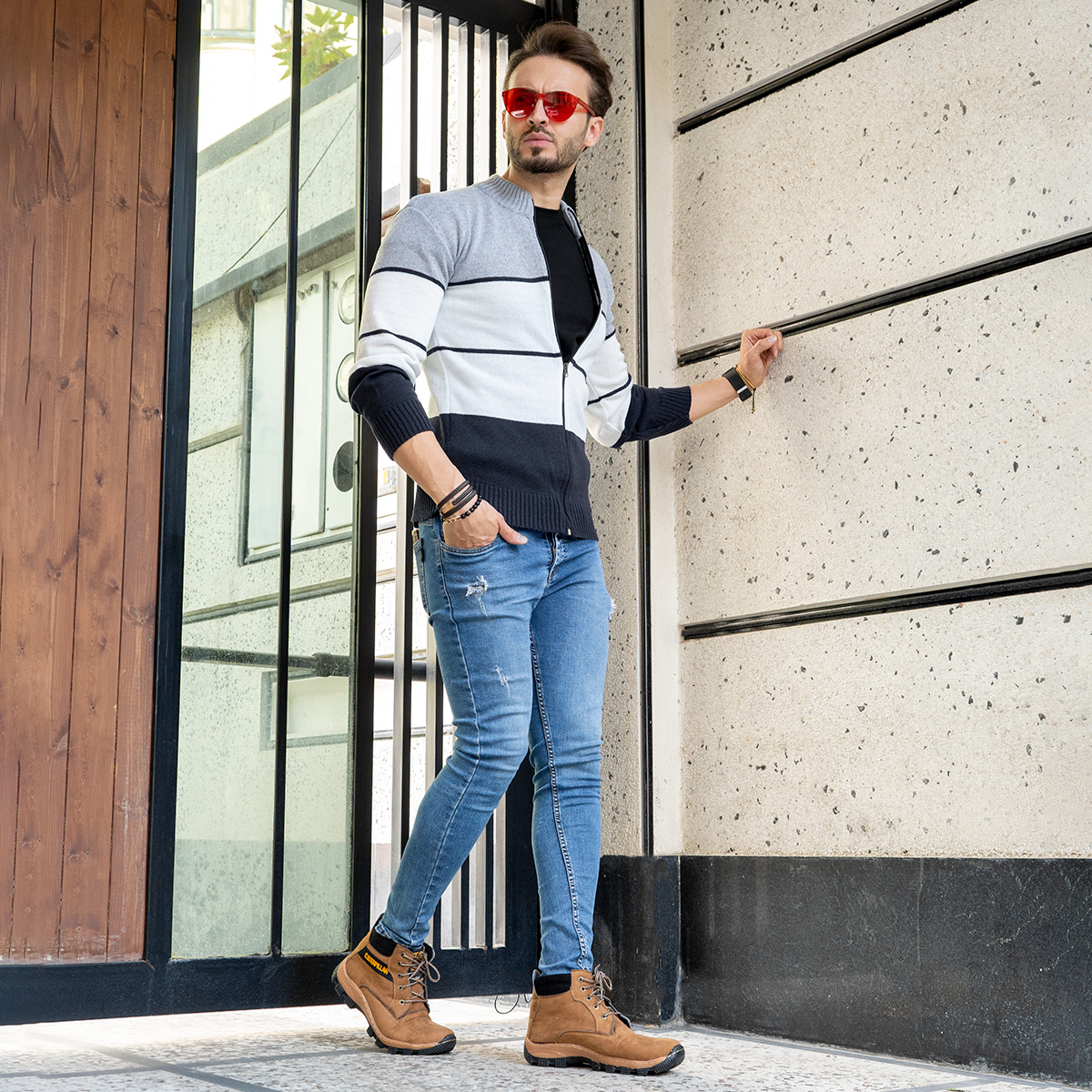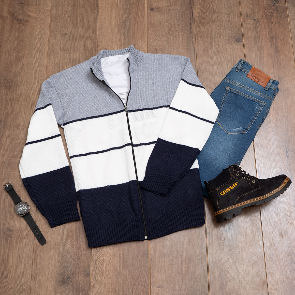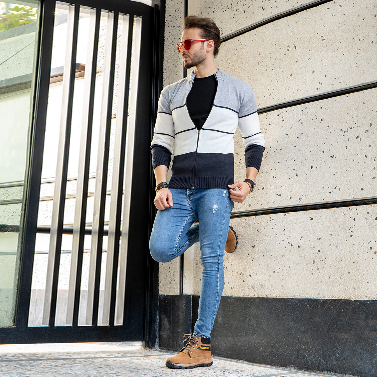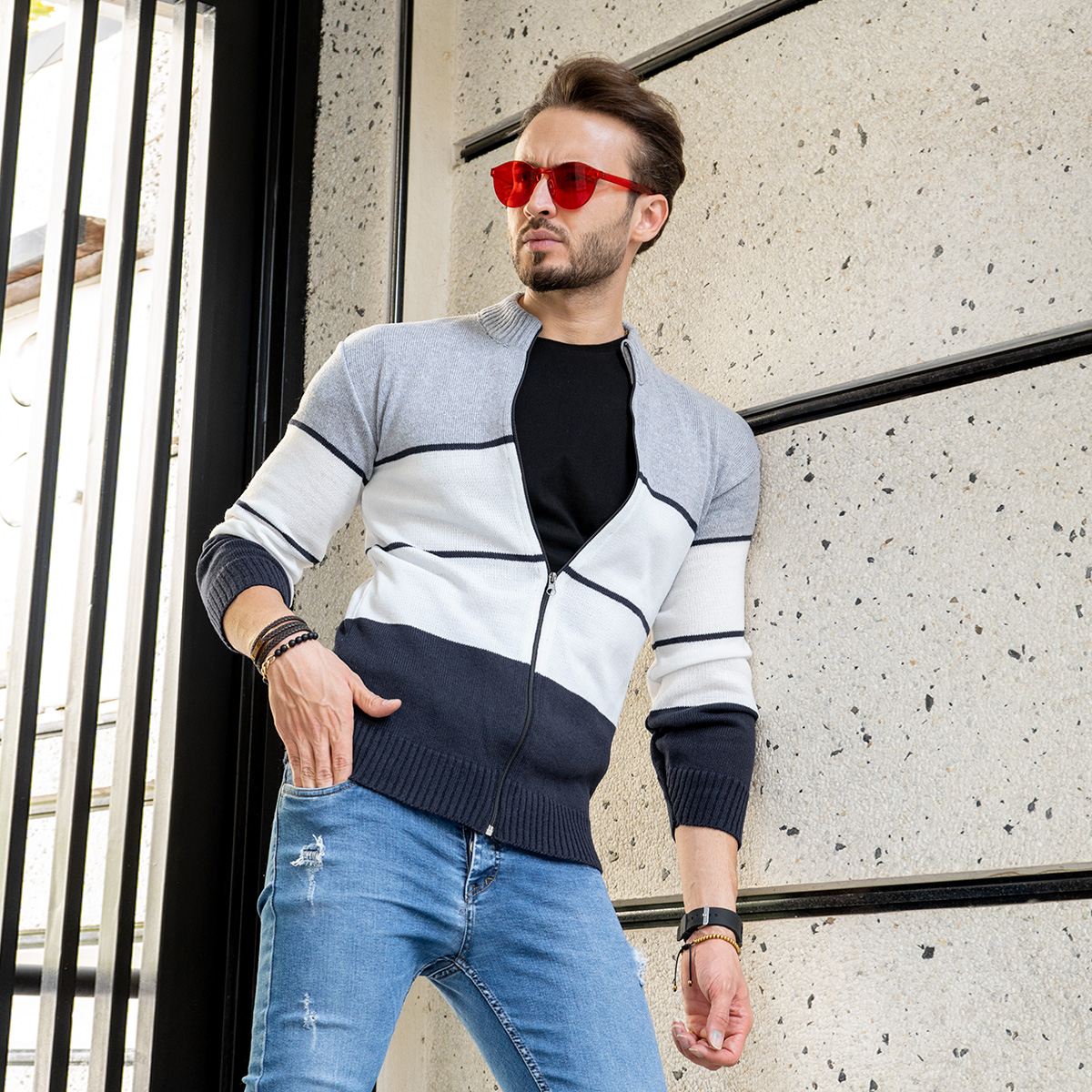 سویشرت بافت زیپ دار مردانه سه رنگ مدل ABED