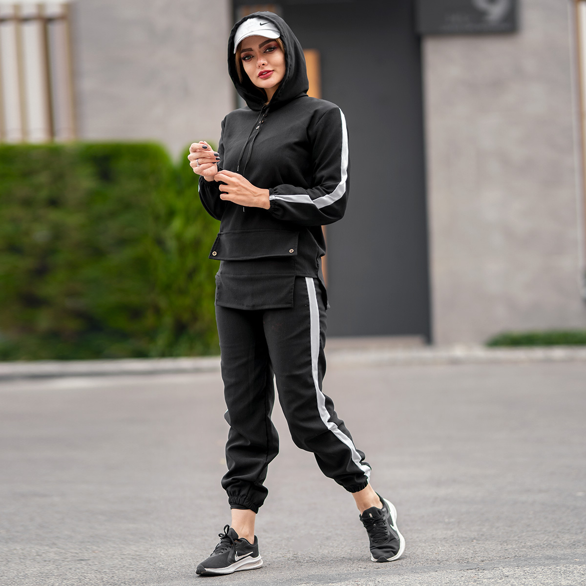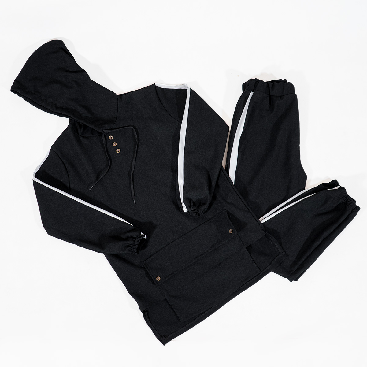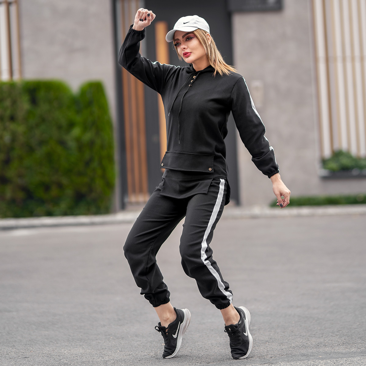 ست هودی شلوار جیب جلو مشکی دخترانه مدل Erina