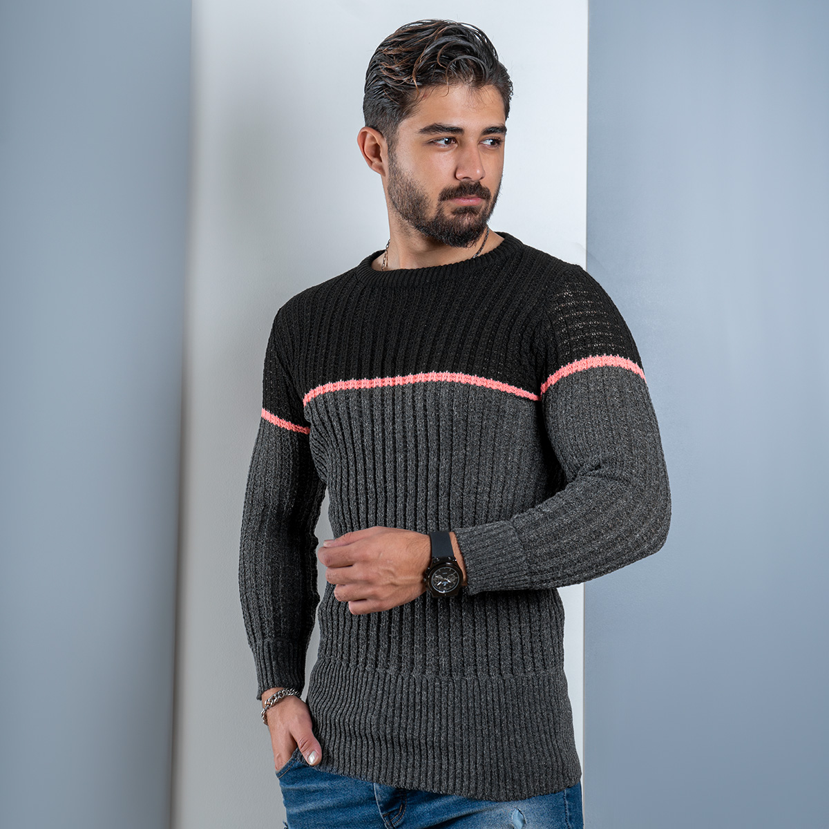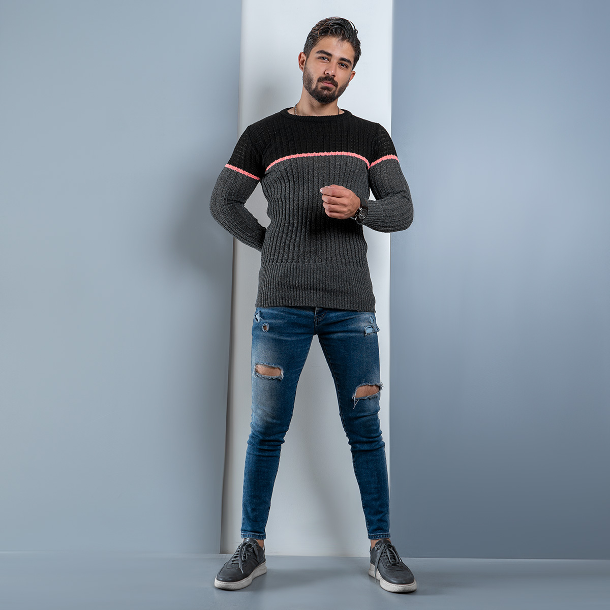 پلیور اندامی (T) ذغالی مشکی مردانه مدل Adnan