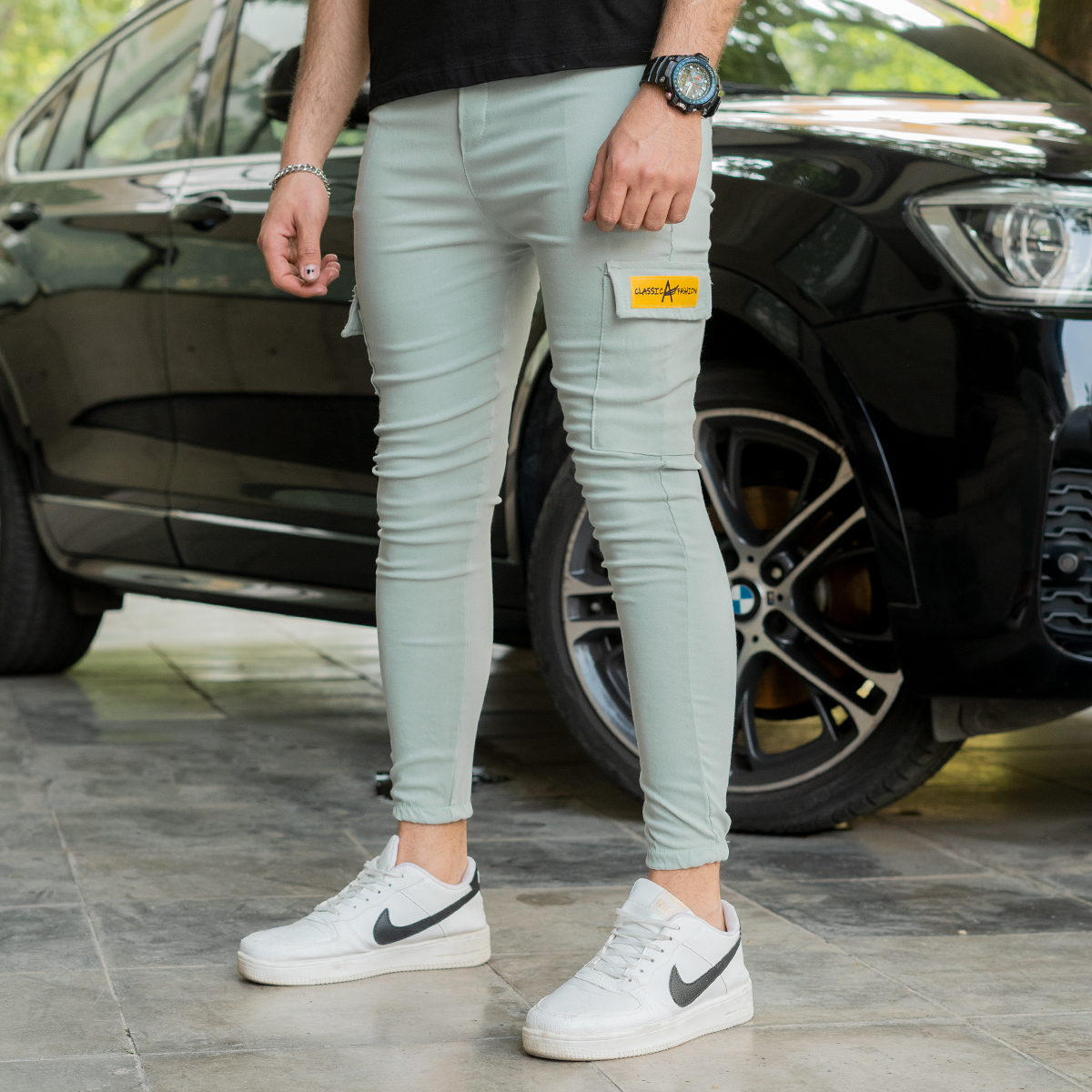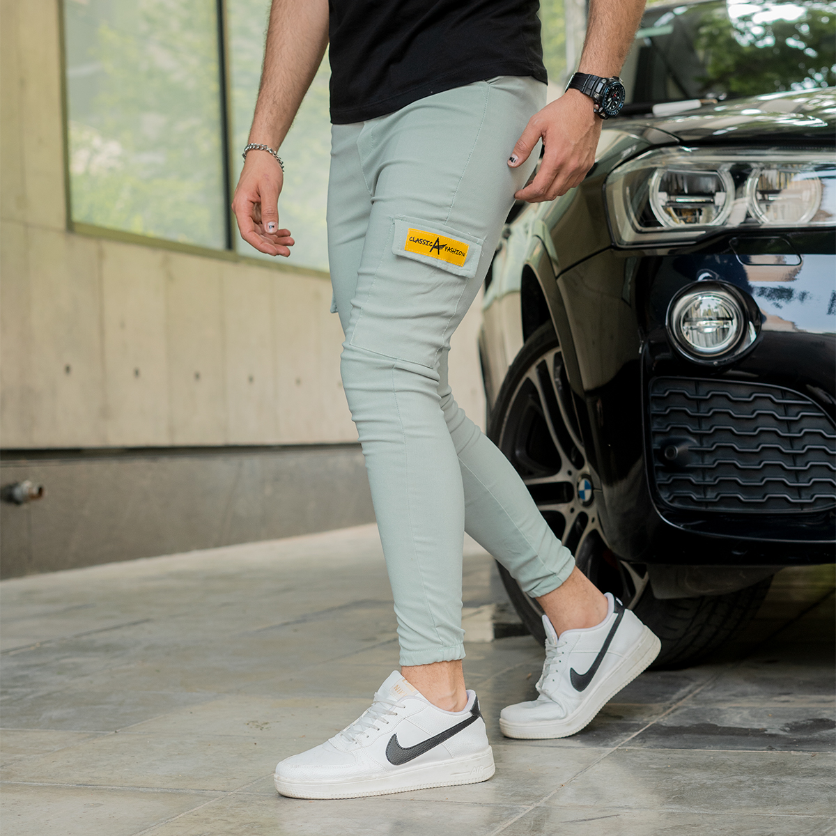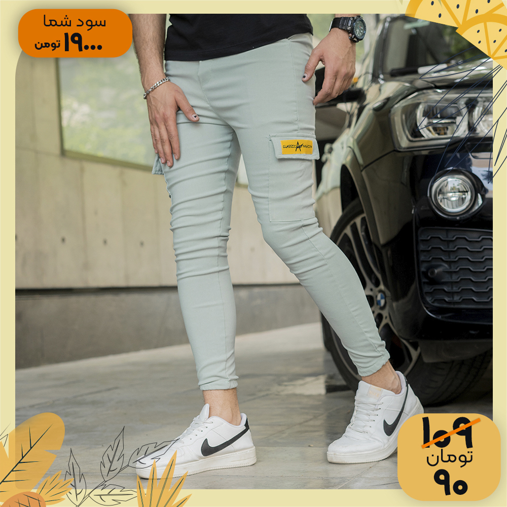 شلوار اسلش بنددار سبز کمرنگ چهارجیب مدل 68