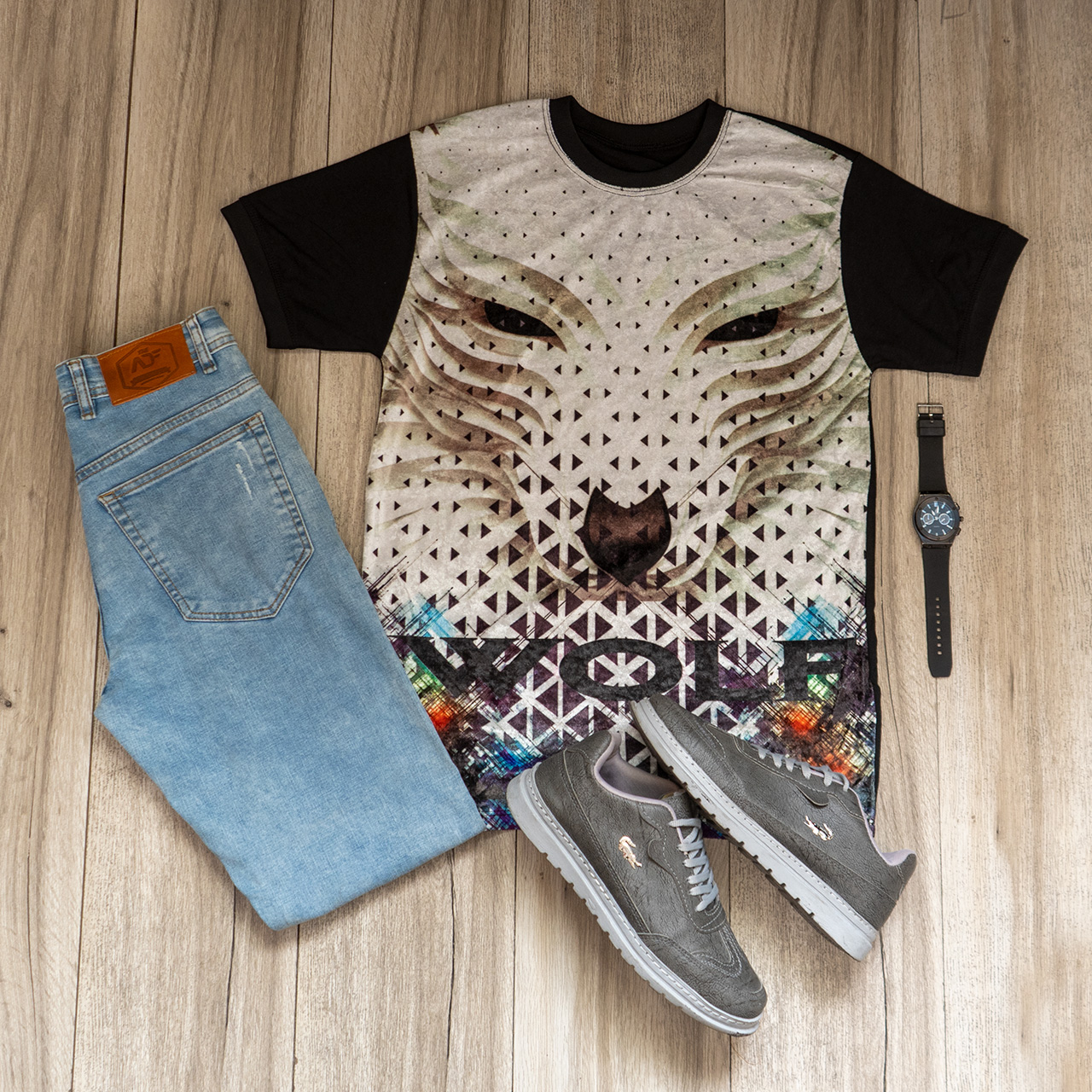 تیشرت مخمل گرگ سفید مردانه مدلL106