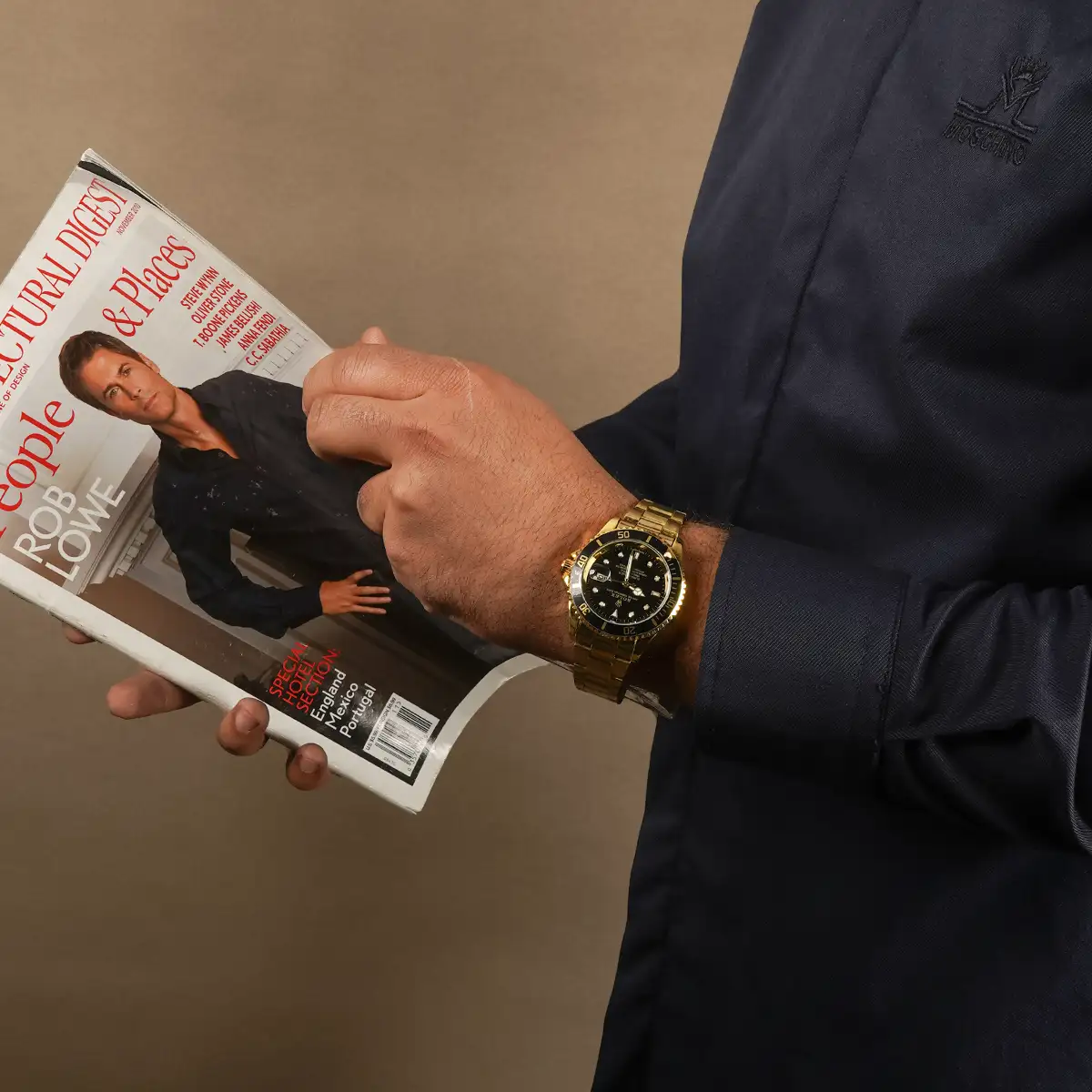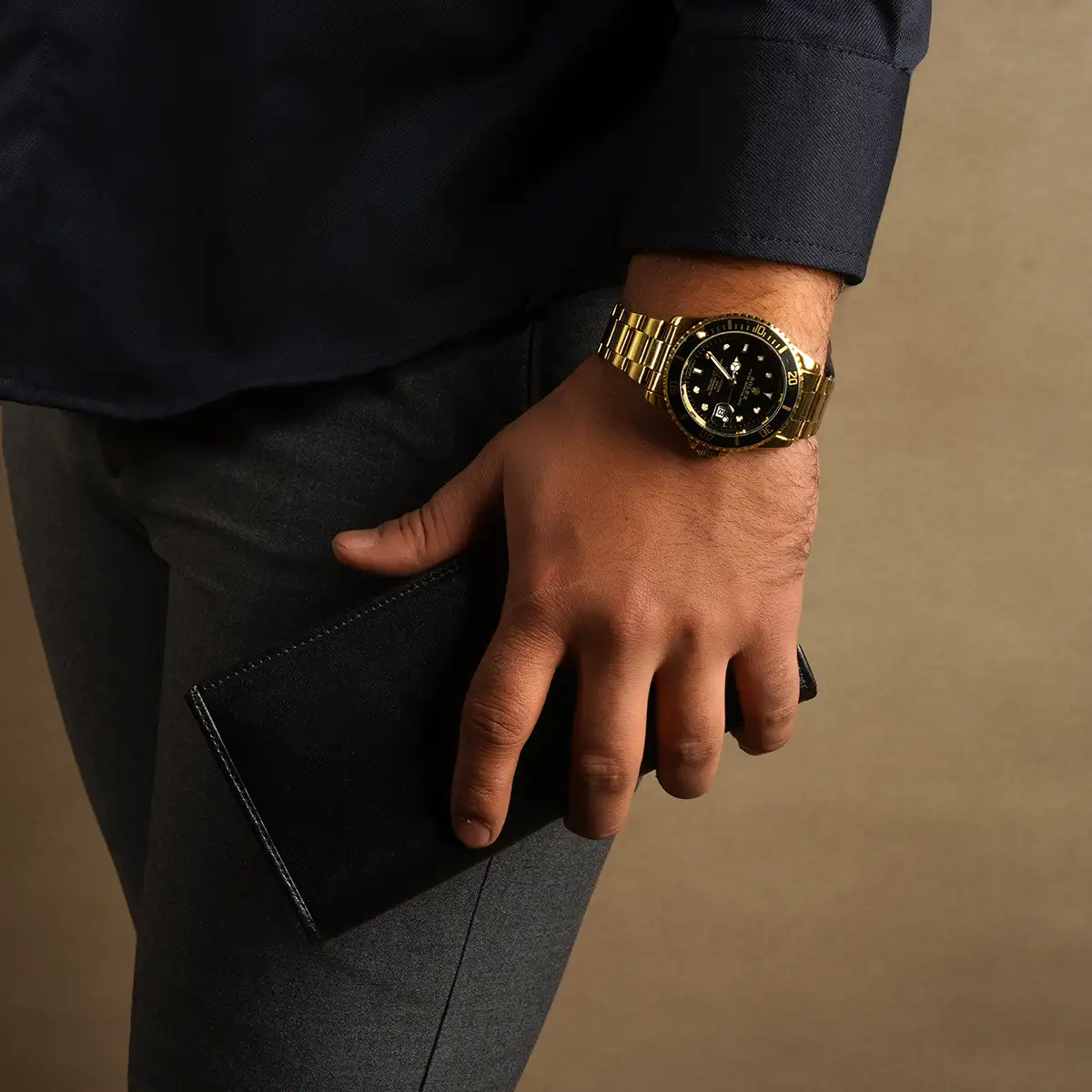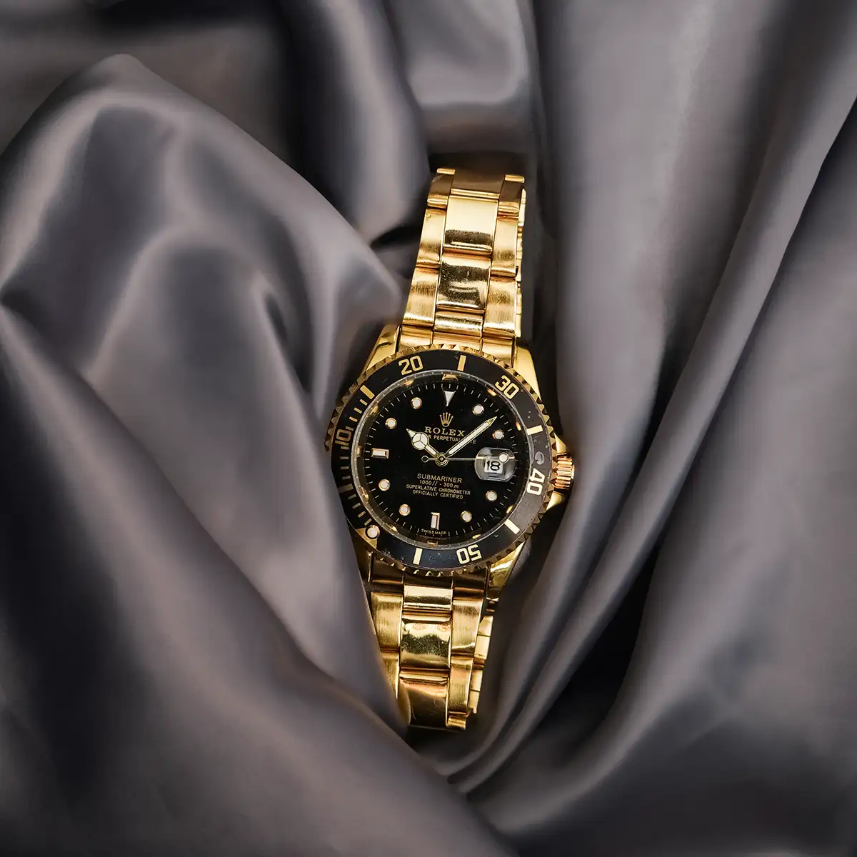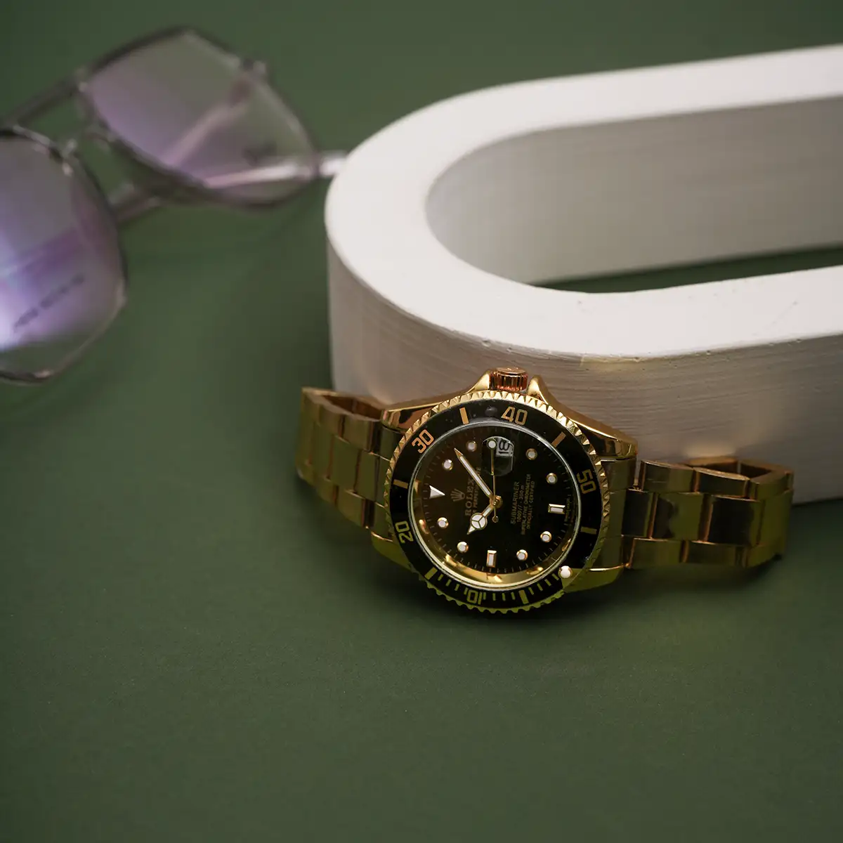 ساعت رولکس طلایی صفحه مشکی مردانه مدل 435