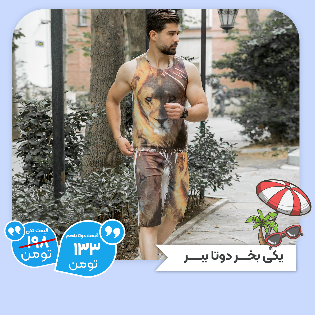 دو تا ست رکابی شلوارک طرح شیر مدل C28