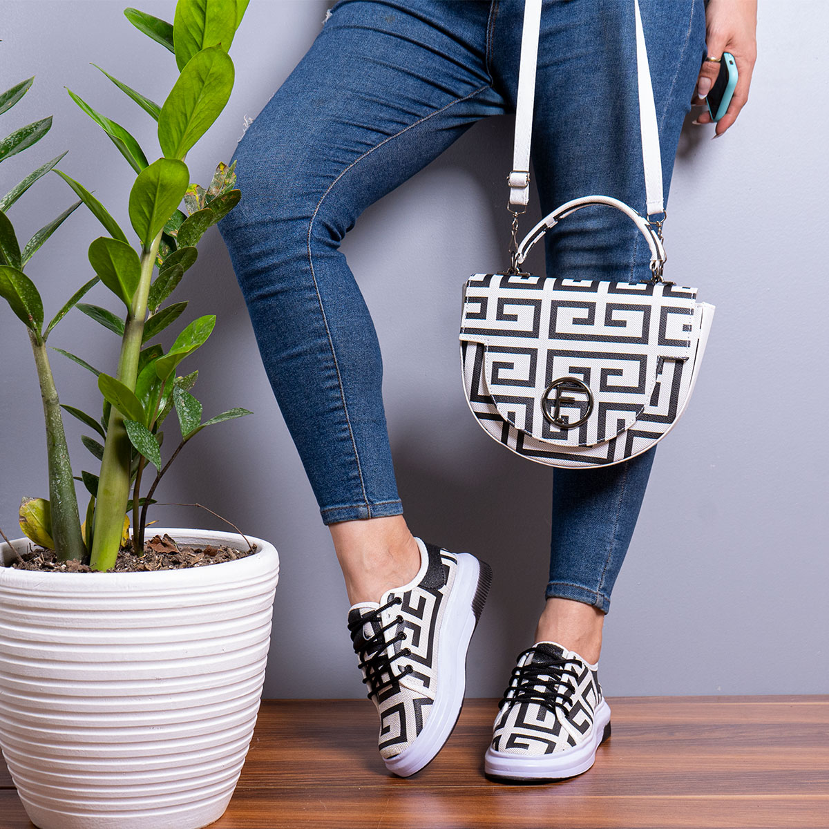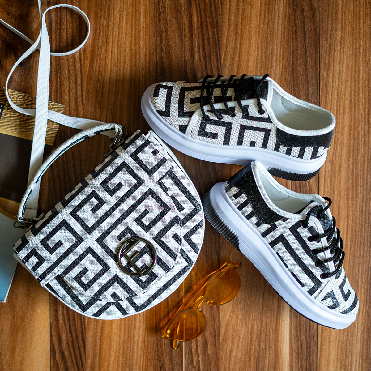 ست کیف و کفش سفید مشکی دخترانه مدلX58