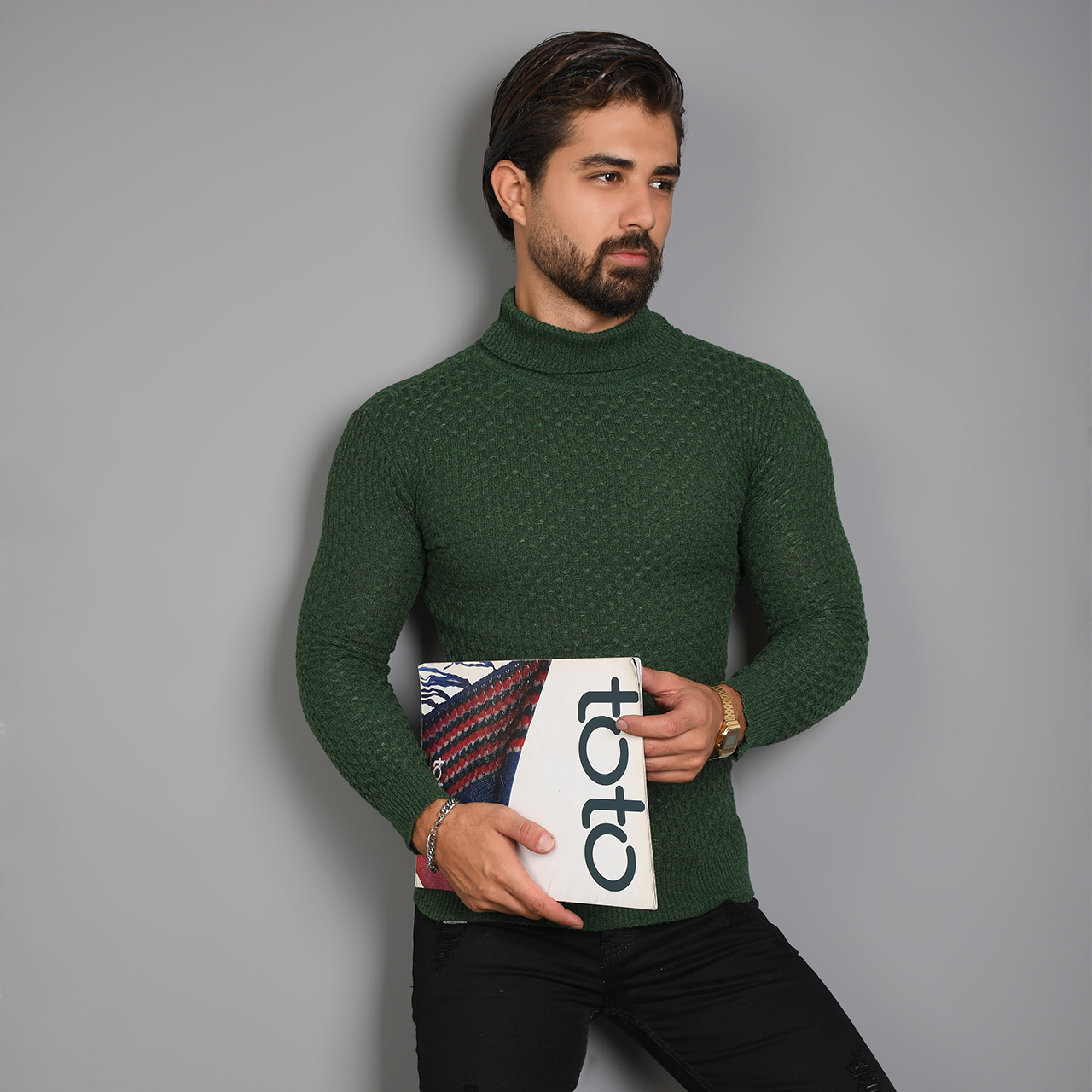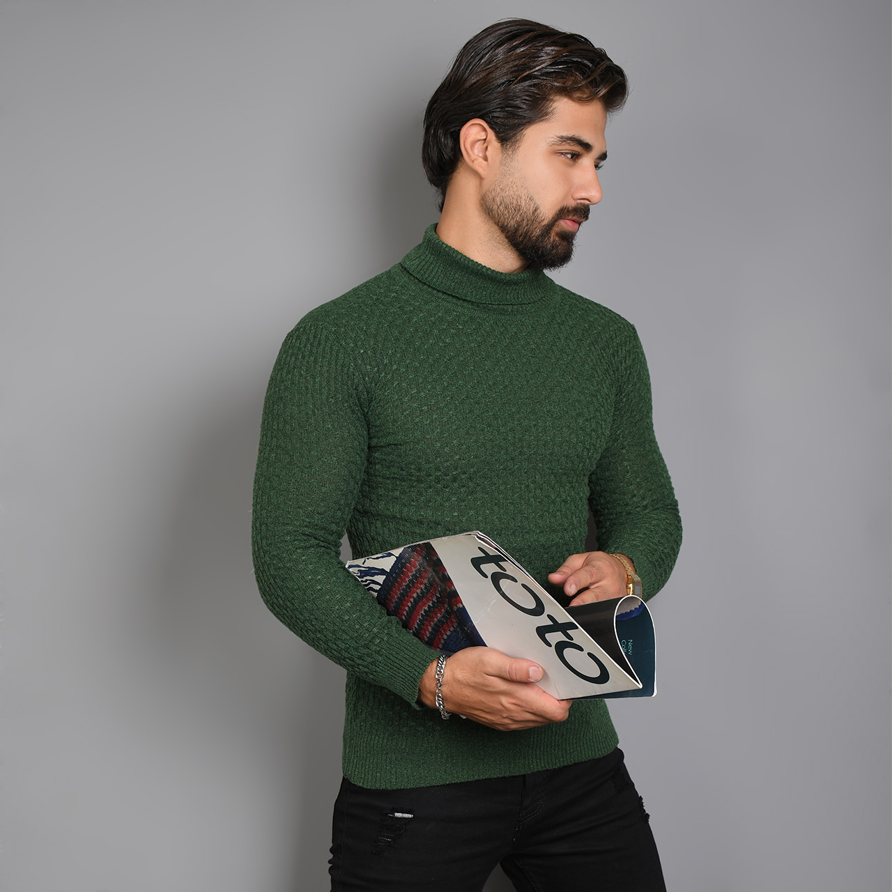 پلیور یقه اسکی مردانه سبز مدل Oktav