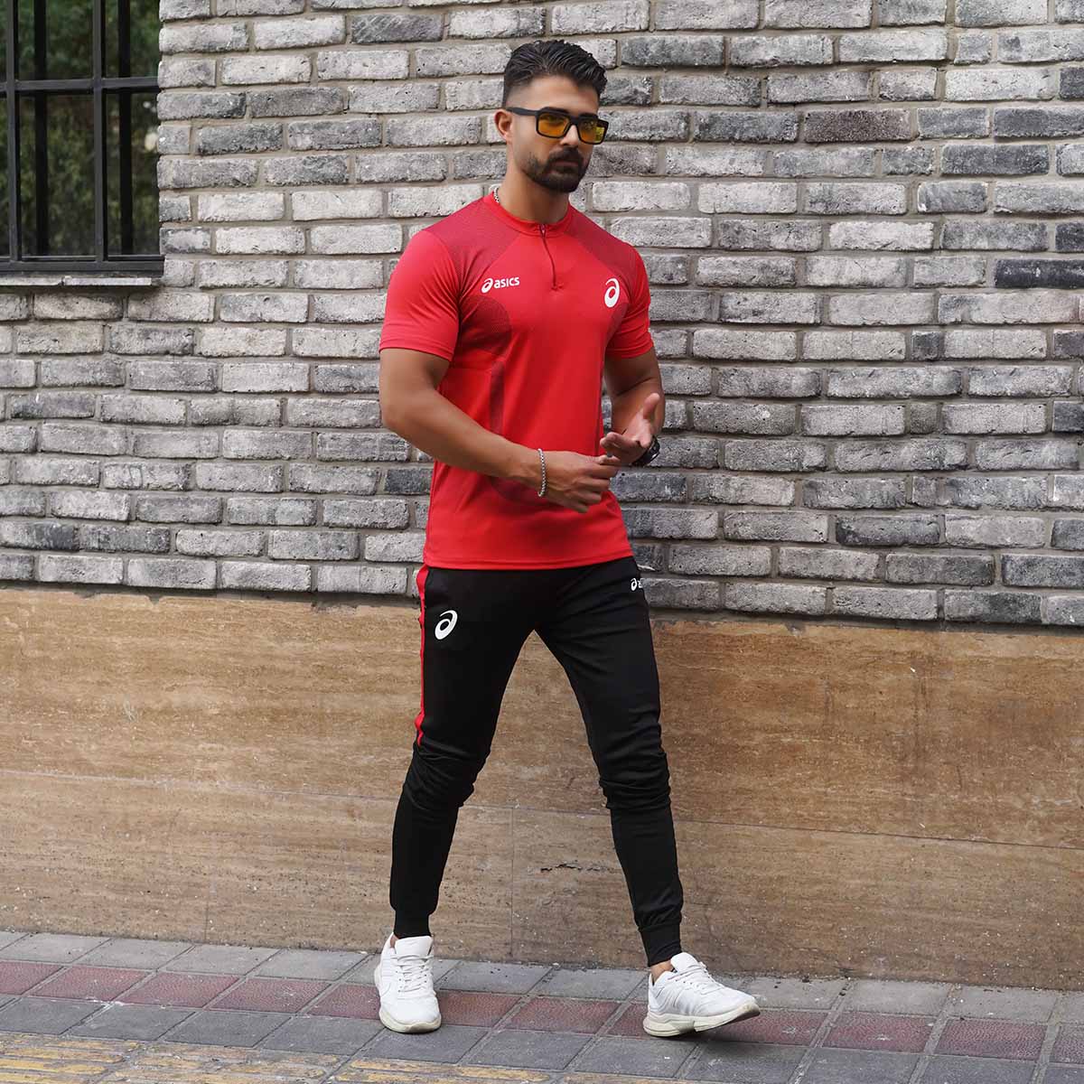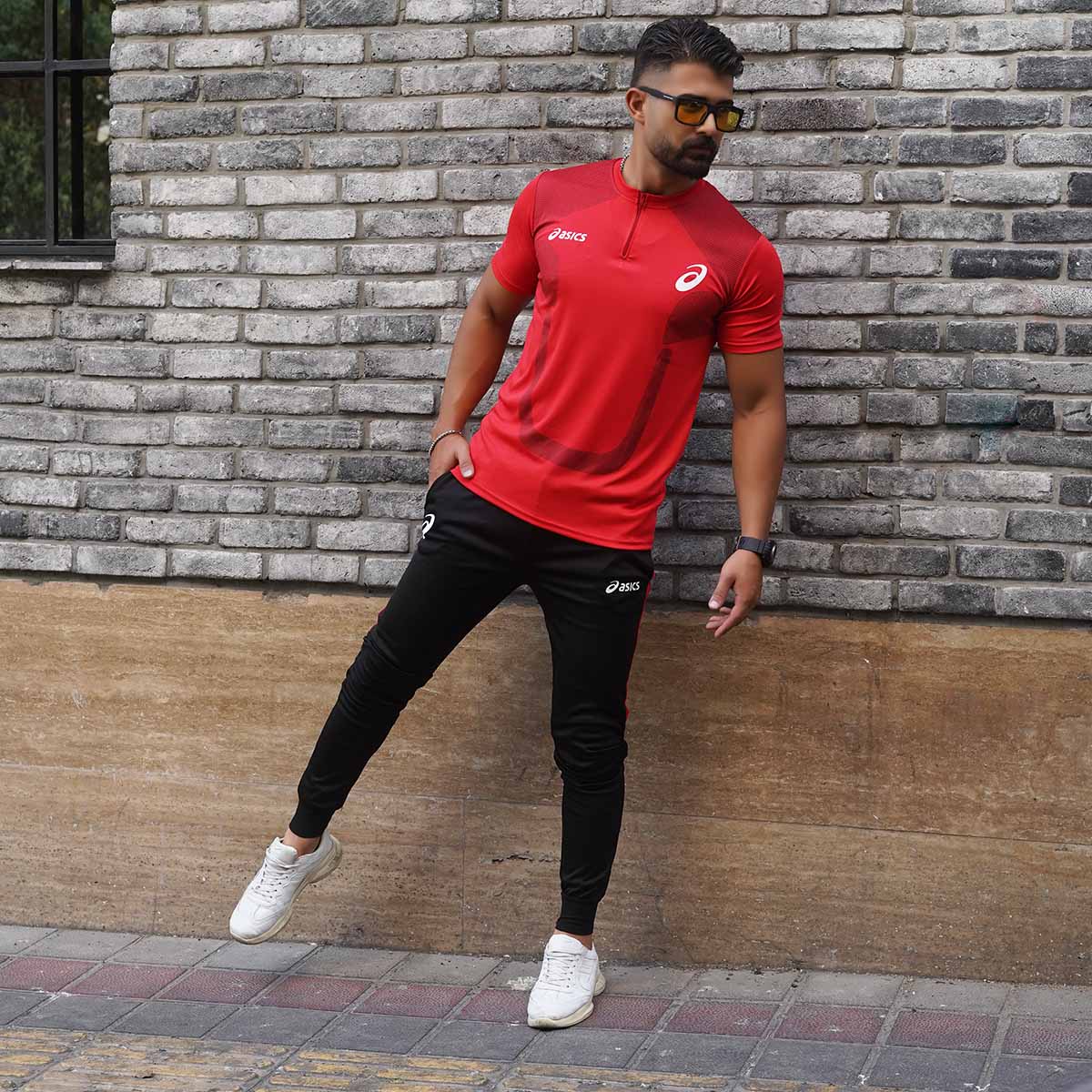 ست تیشرت شلوار مردانه قرمز مدل ASICS