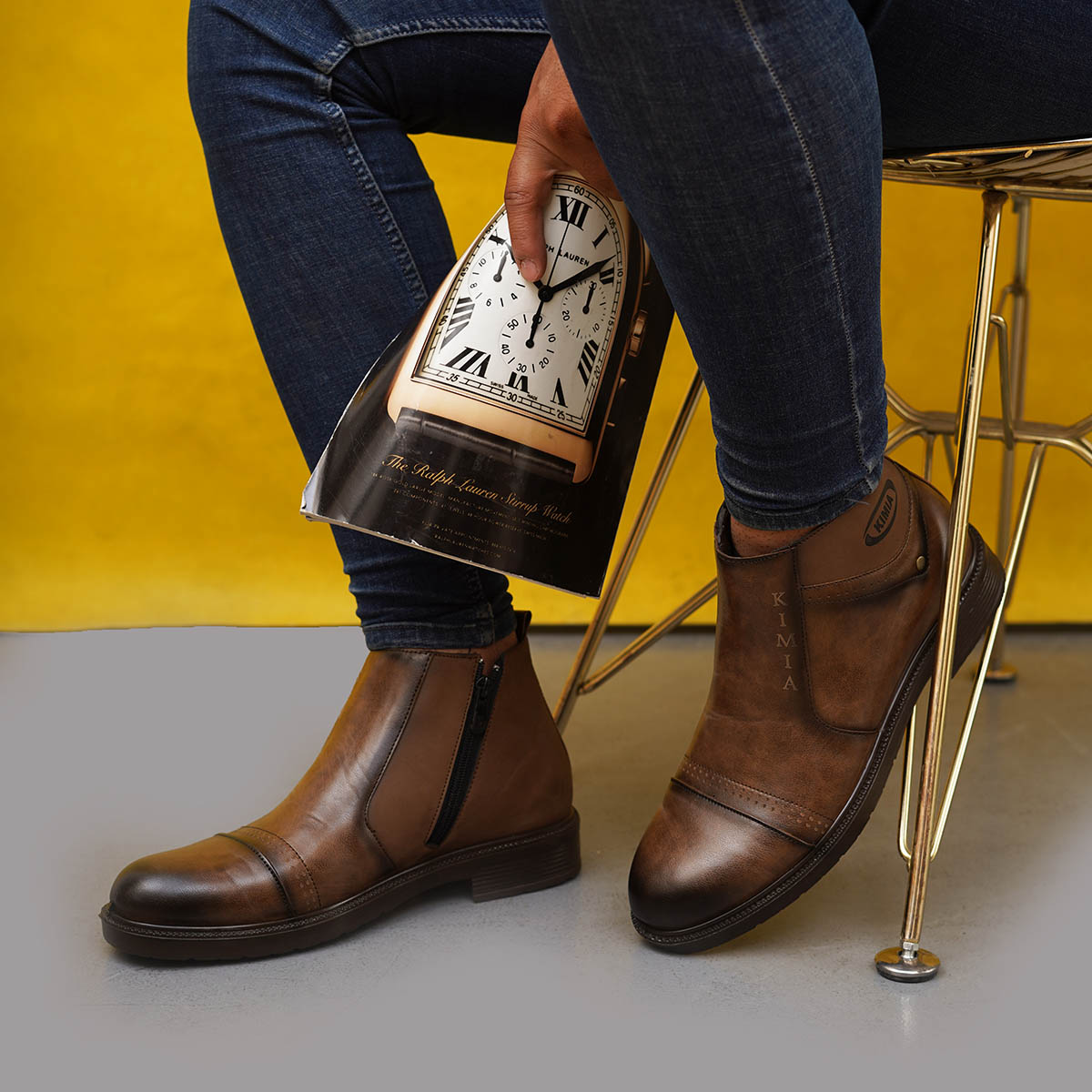 نیم بوت قهوهای مردانه مدل Shahin