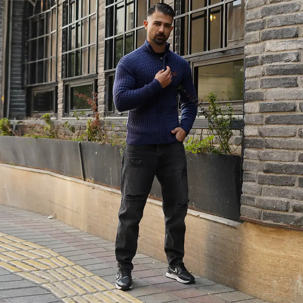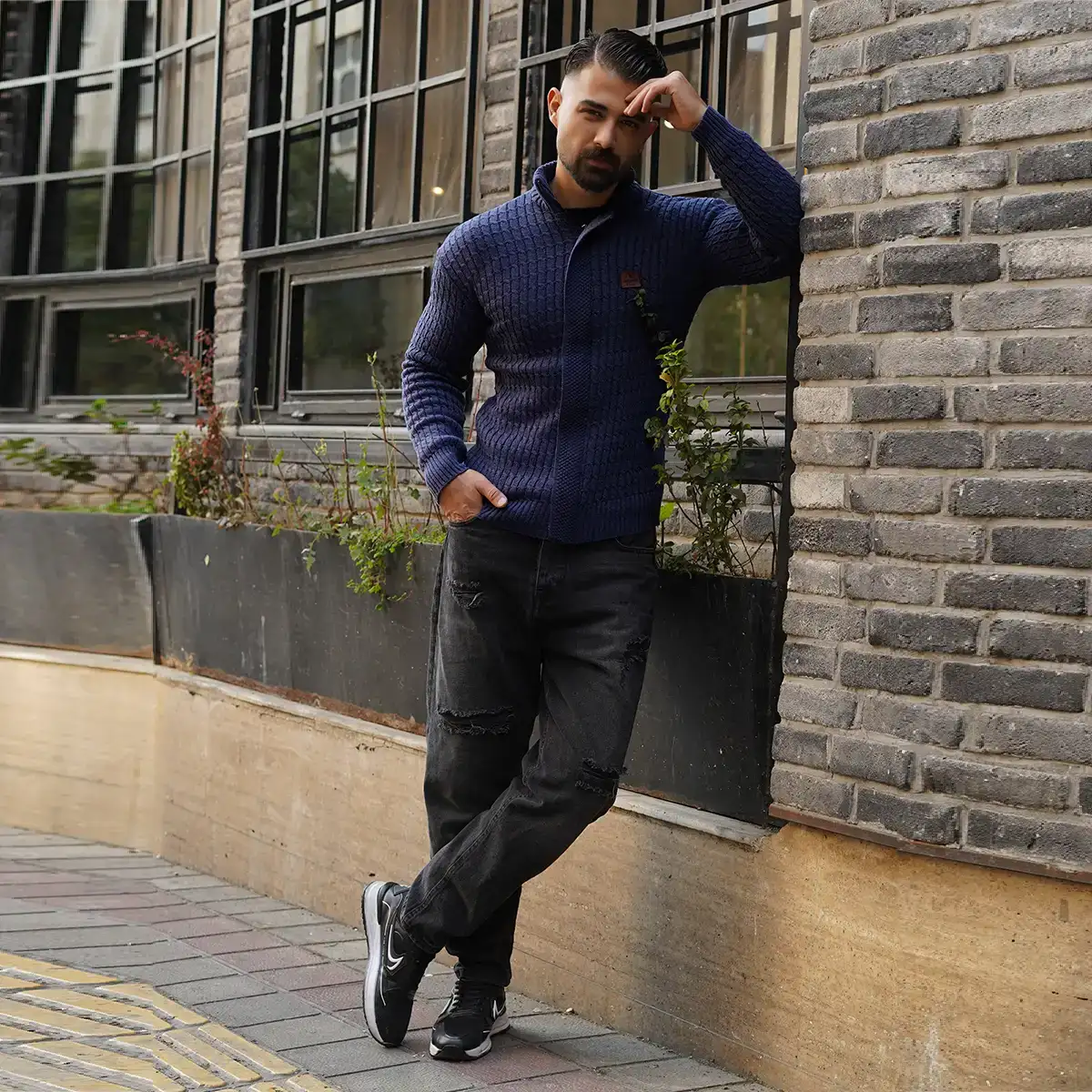 سوئیشرت بافت سرمه ای مردانه مدل OKSEN