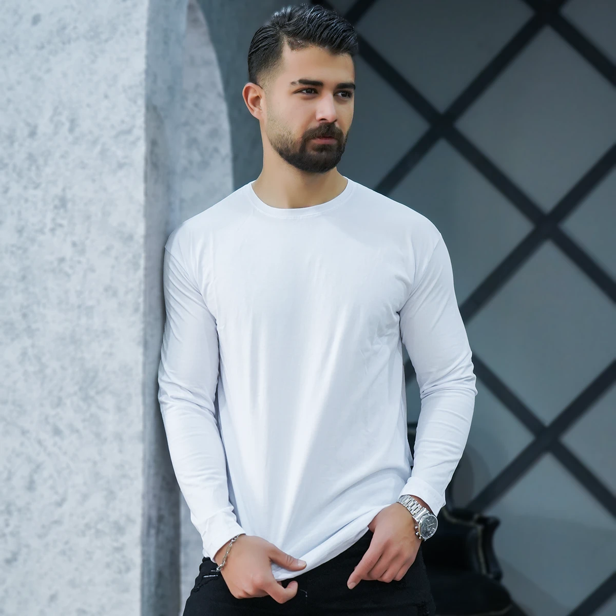 تیشرت آستین بلند سفید مردانه مدل Vala