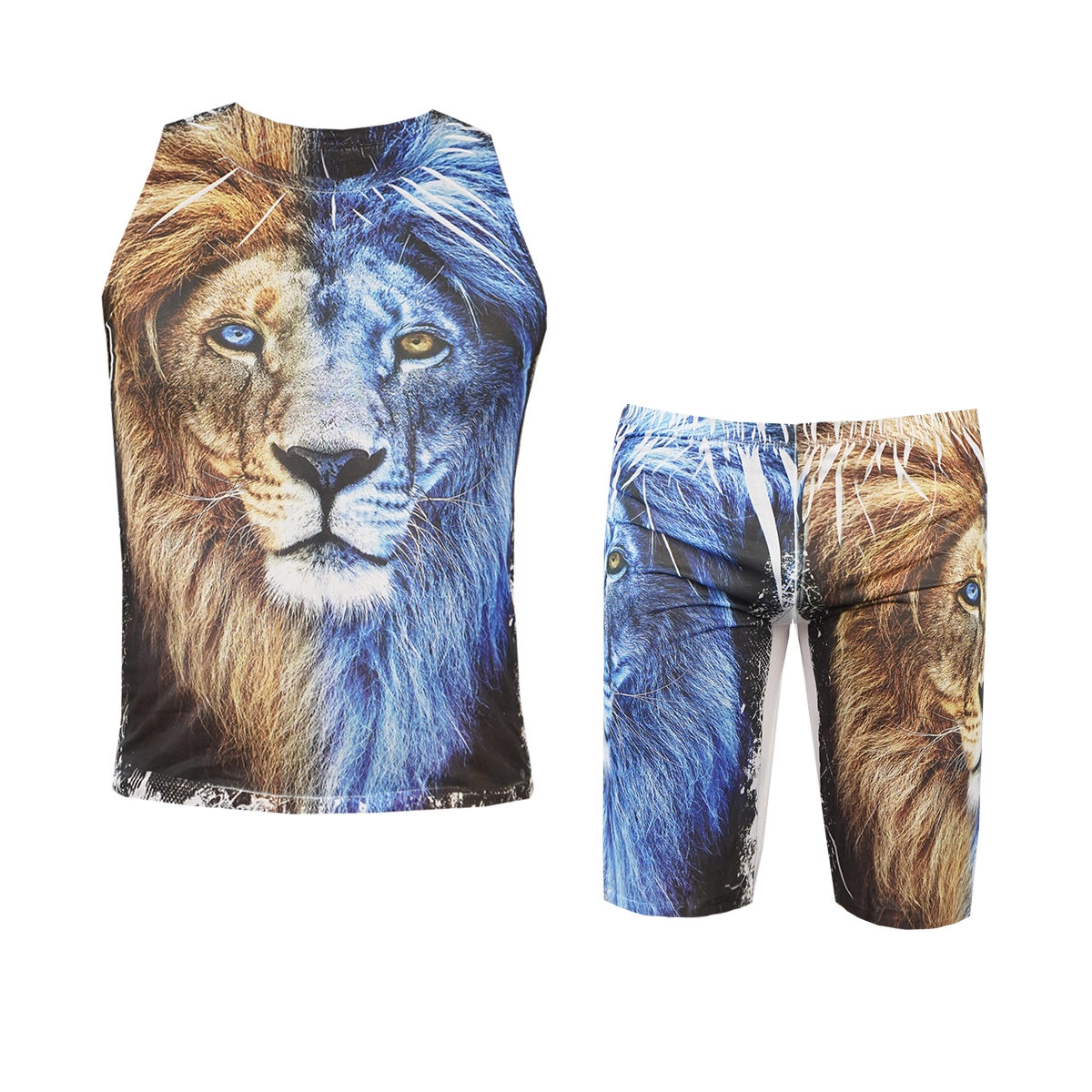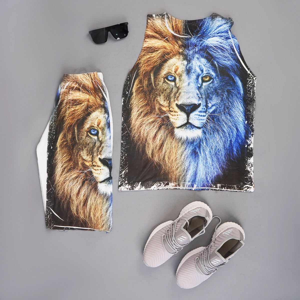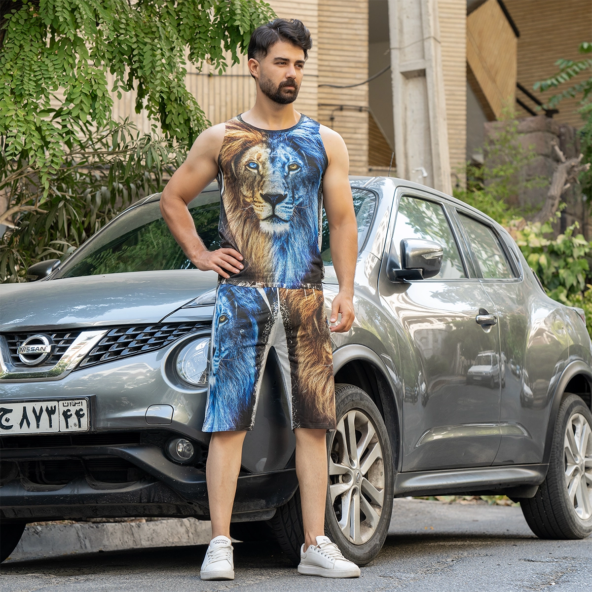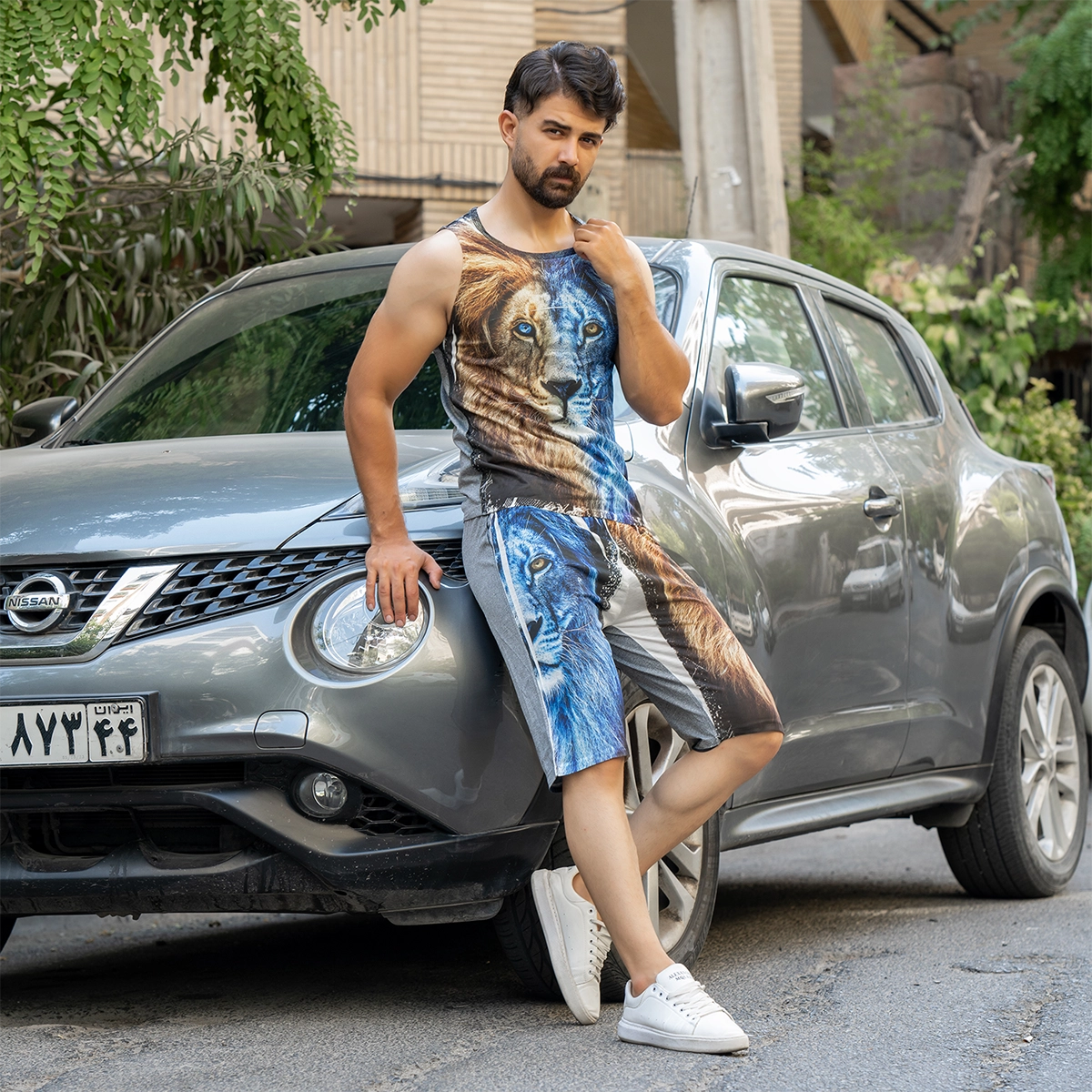 ست رکابی شلوارک مردانه طرح شیر دورنگ