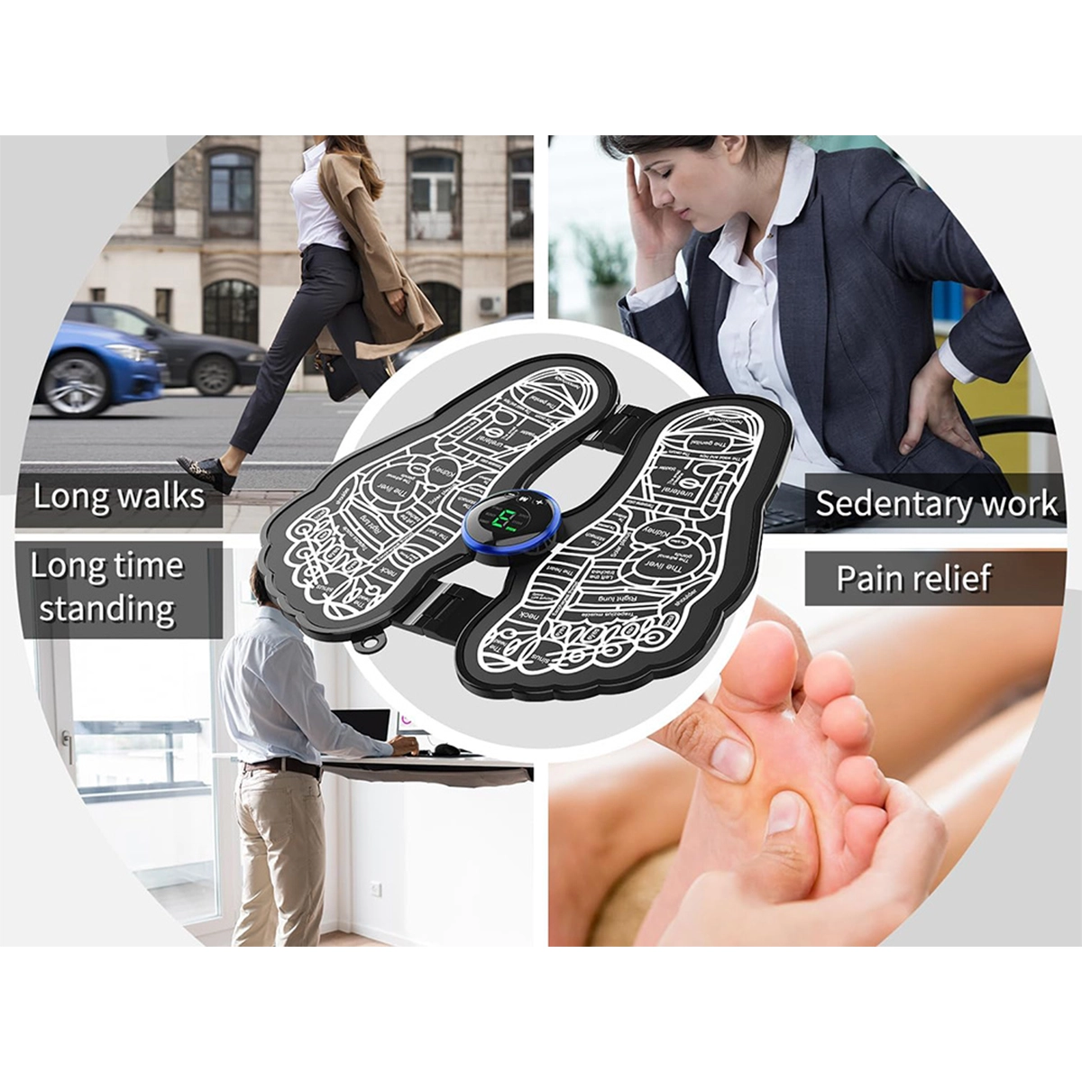 ماساژور الکتریکی پا EMS Foot Massagern دارای 6 نوع حالت متفاوت برای ماساژ است و شدت قدرت آن را می توان تا 9 نوع متفاوت تنظیم کرد. در جعبه این کالا که به صورت شوک الکتریکی پاها را ماساژ می دهد یک کابل microUSB به USB قرار دارد که برای شارژ کردن این ماساژور مورد استفاده قرار می گیرد و همچنین ولتاژ این کالا DC 3V است و دارای دو باتری نیم قلمی AAA می باشد و فرکانس آن از 1 تا 100 است. ابعاد این ماساژور 32.5x29.5 سانتی متر می باشد و توصیه شده است که در دمای 15 تا 35 درجه سانتی گراد استفاده شود. در آخر لازم به ذکر است که این ماساژور پا که شدت جریان حداکثری کار آن 9.8 میلی آمپر است، دارای فناوری EMS بوده که برای افزایش گردش خون و ریلکس شدن عضلات و .. مناسب می باشد همینطور این محصول برای حفظ سلامت باتری بعد از 15 دقیقه به طور خودکار خاموش می شود.