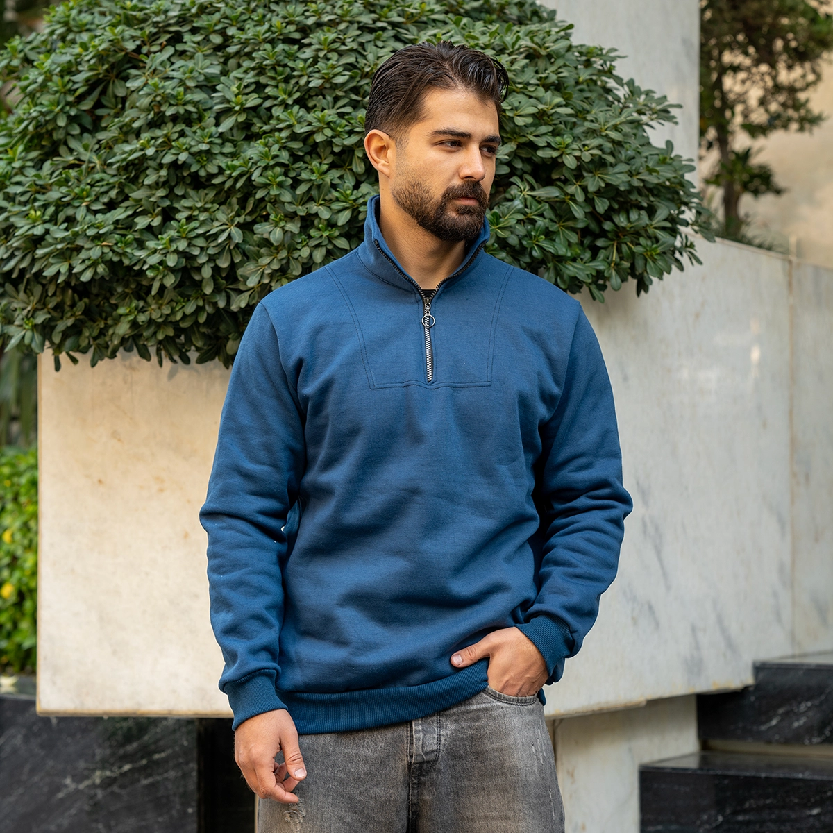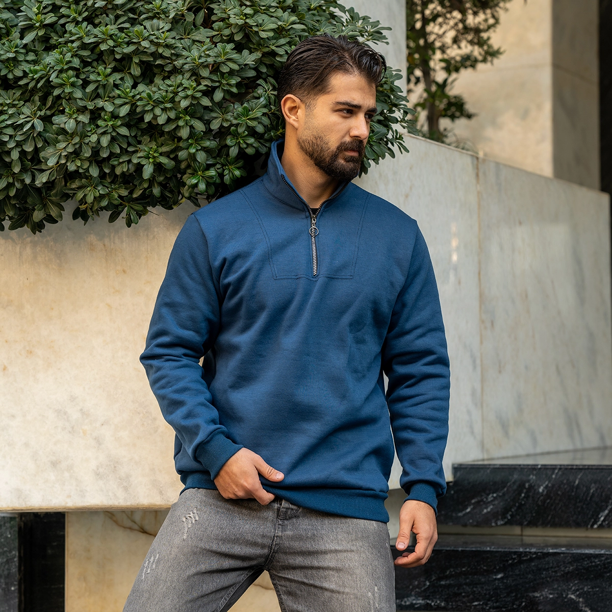 هودی نیم زیپ مردانه آبی مدل Shobin