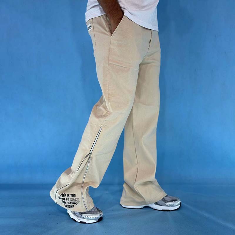 شلوار بگ کرم مردانه مدل پایین زیپ