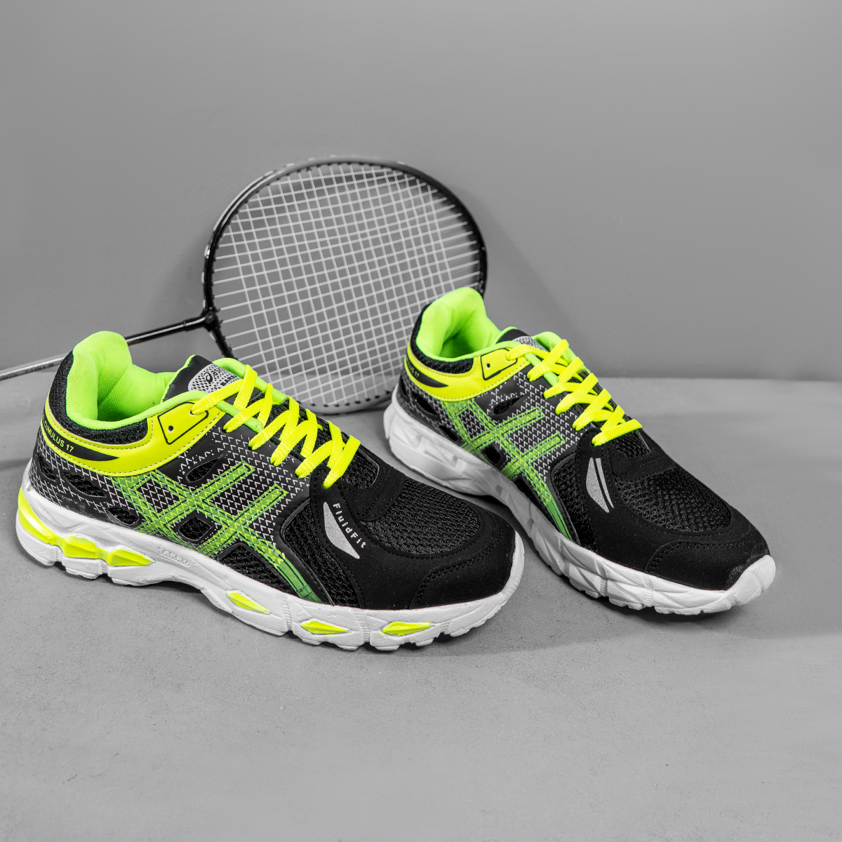 كفش ورزشي اسيكس مردانه مشکی سبز مدل kayano