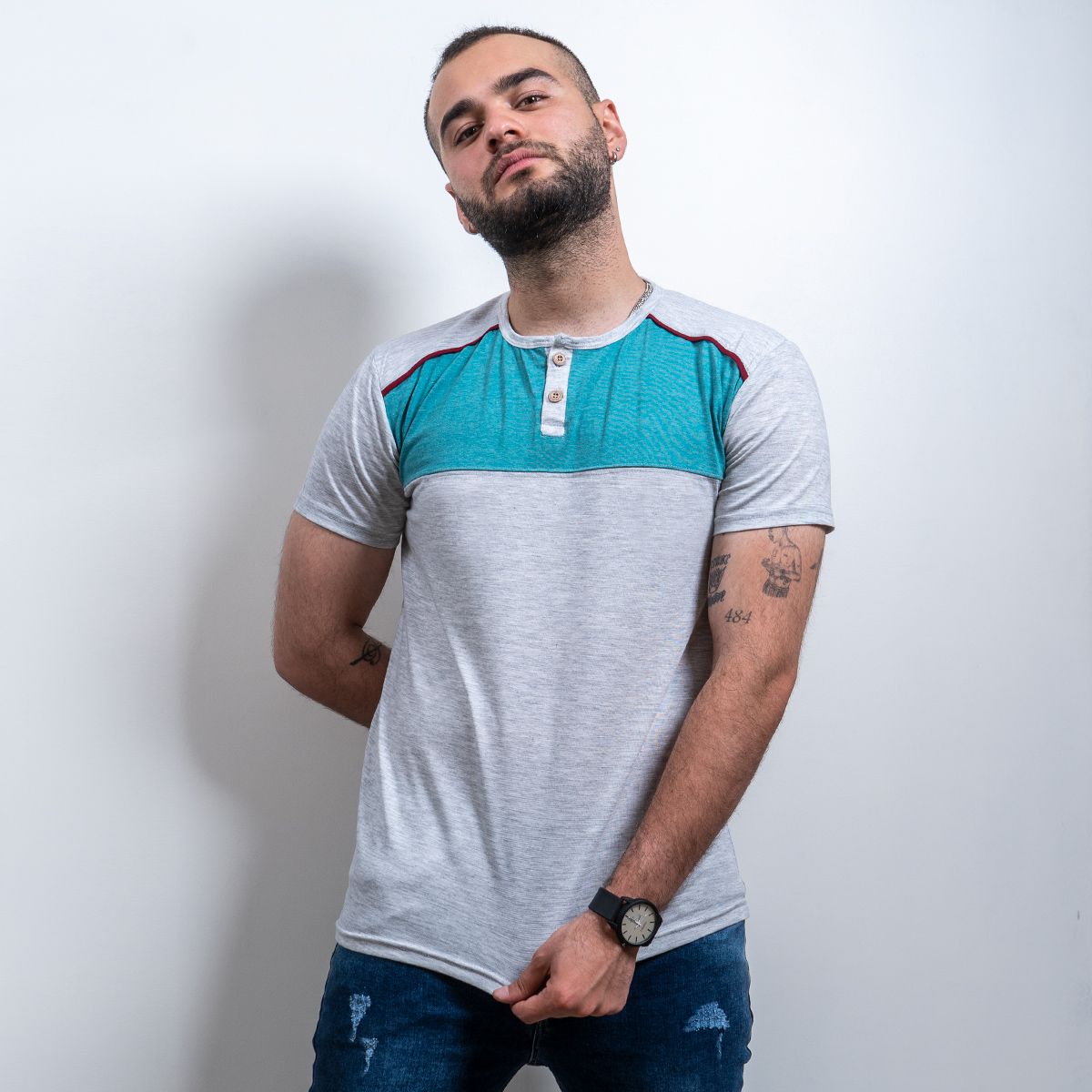 تیشرت مردانه طوسی روشن فیروزه ای مدل Ratim